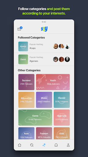 CATEGORIES: Don't get lost among thousands of contents! Follow and share content selecting categories, create your feed according to your interests.