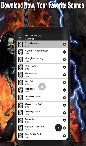 Download and Enjoy the new heavy metal ringtones for free cell phone, where you will find the best classic heavy metal sounds, in this App you will find old heavy metal ringtones, download metal ringtones for your mobile, notification sounds or SMS, tones heavy metal ringtones for free Android phone, where you can find the best classic, new and old ringtones.