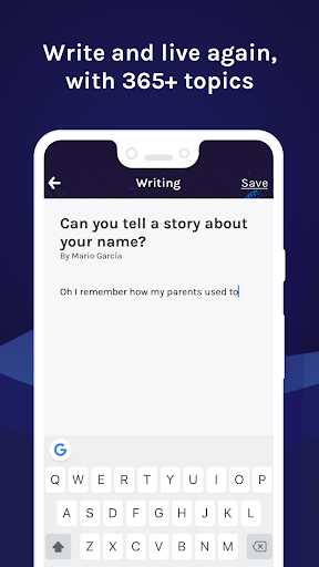 Yester will help you to write the story of your life (your memoirs) by sending you daily topics to start writing about them, so you don’t have to be wondering what to write about each day. We will structure your stories by chapters regarding human ages: childhood, adolescence, etc. Yester offers you a fantastic experience, surrounded by emotional elements that will connect you with your past, present and future. Your stories will be available through all your compatible devices.