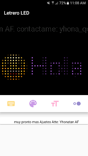 Se le permite escribir en un mensaje, seleccione la velocidad, color, tamaño de texto y desplazar el texto hacia los lados.
