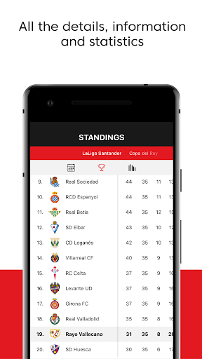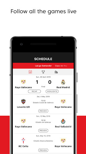 ✔ Calendar, live results and classification: Check all the key dates and timetables on the official calendar for all competitions for Rayo Vallecano: LaLiga 1|2|3, Copa del Rey. Get the live results from every game on match day, with the league table fully updated at all times. Stay in touch every second with what is happening in every game with live updating information.
