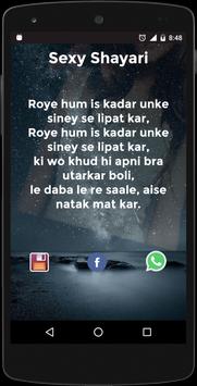 Sexy Adult Shayari is Very large Collection of Adult, Non veg, Dirty or Double meaning jokes or shayaries. Daily updates of latest dirty shayari in any language. Good Collection database of adult or non veg shayari in multiple language. You can add dirty sms to your favorite list for offline use. You can also share non veg sms with your friends.