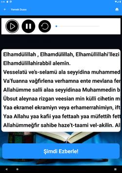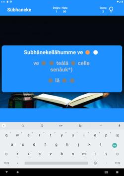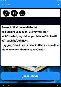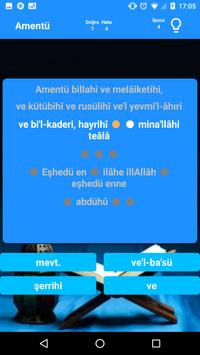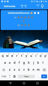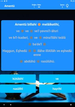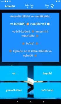 Çeşit çeşit seviyeli alıştırmalarla Yemek Duası, Amentü Duası ve Kunut Dualarını ve Namaz dualarını ezberleyebilirsiniz.