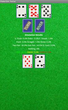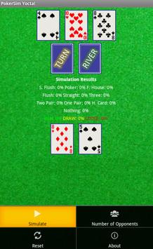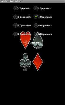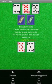 NOTE: Please understand this app does not guarantee that you will always win your texas hold'em poker matches, even if the odds point to that. This is a piece of software that just simulates a finite number of texas hold'em poker games based on the data you provide, so that we are not responsible for your acts, decisions, profits or losses related to the use of this app.