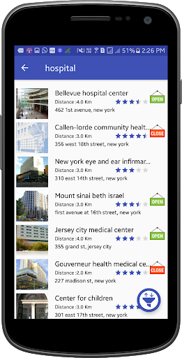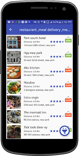 • Shows List of places including Name, Rating, photo, distance from your current location,