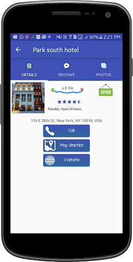 • Call on contact number, View Status (Open or Closed), Visit website.