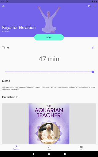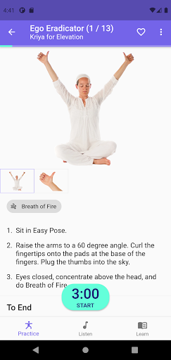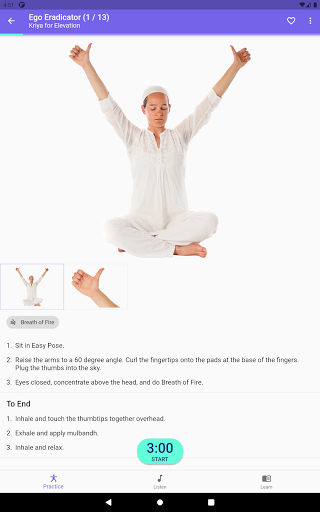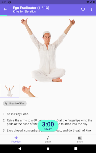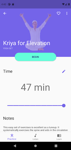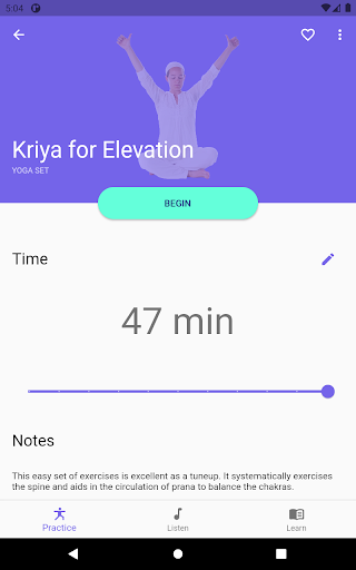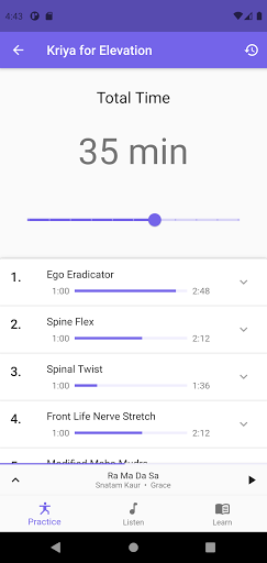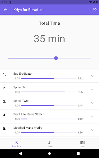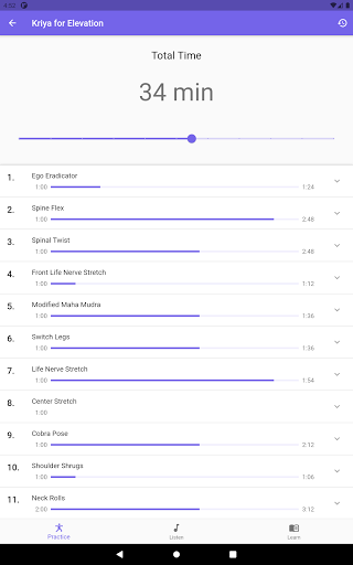 4. Flexible times to fit your schedule: Don't have enough time to complete the full length of a kriya? Adjust the time of the whole Kriya or an individual exercise instantly.