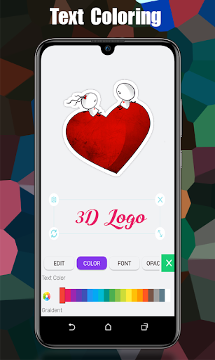 The best text editing options you can add or edit your text freely You can change color of your text and you can use any font style it has many font styles you can easily apply any font it contains 2D font styles and 3D font styles.You can also set the shadow of the text and color it with different colors.