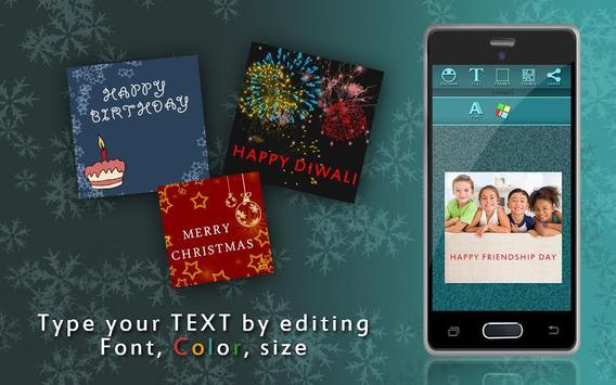 Create pictures with your moods, parties, expression with lots of FRAMES, COOL STICKERS,THEMES,FONTS.