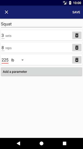 • record custom exercises with custom parameters - reps, weight, time, distance