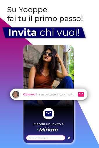 L’uomo ha un’arma segreta: gli inviti. La donna ha sempre l’ultima parola e decide se accettare o meno gli inviti. Cerchi compagnia per una chiacchierata, un appuntamento o una relazione? La troverai su Yooppe!