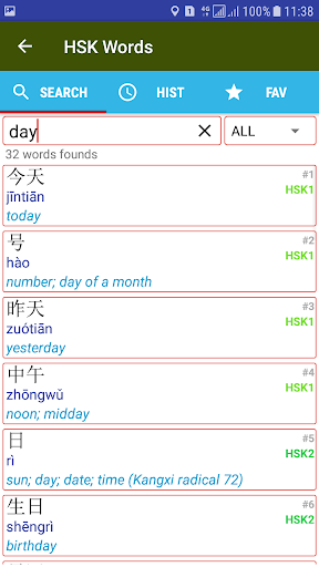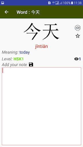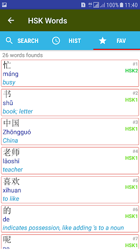 With an easy way to navigate between word and character, it also allow you to add word to your favorite list, history, add notes and add you own words that are not part of the six HSK level.