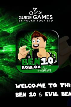 guide For ben 10 roblox 2018 is The best Guide For ben 10 & evil ben 10 roblox Here is a unofficial 100 % , to help you to get more levels , this app is just tips and tricks. You may find some information useful here. This is a perfect for beginner and intermediate player. This app you can feel best experience for playing in game. Please note - This is not a game !! It's is game guide.