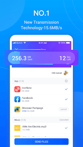 ShareMe transfers files really fast, 200 times faster than Bluetooth.