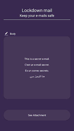 - If you lose your phone or you uninstall "Secure Message", you will not be able to decrypt your old received E-mails, because you will lose your private key, please decrypt your files and keep them in a safe place before uninstalling Lockdown mail.