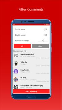 Random Giveaway for Youtube is an application to search for winners randomly for YouTube, the Random Giveaway for Youtube application will take all comments on the specified video, this application also has a filter feature that will make it easier for you to select giveaway participants, besides the application there is also a history feature that will save the results of the giveaway that has been done.