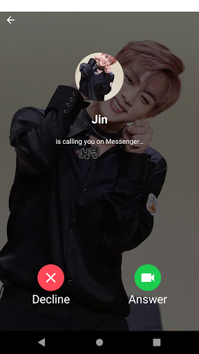 BTS JIN call you : Fake call and video call application to accompany your days in your free time when you feel lonelyand boring then entertain yourself with fake calls from your idol. this application to simulation a fake chat messenger with a fake call and video call, we add option to start live with your BTS JIN, to look a real chat messenger live. all this just for prank your friends or your family to make a fake chat with favorite stars BTS JIN to be a real chat, you have three option to connect with BTS JIN Call BTS JIN calling voice, BTS JIN live chat or BTS JIN calling video, Download BTS JIN fake video call and enjoy with friends