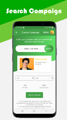 ✔ Add your channel and videos campaigns to our platform by earning coins.
