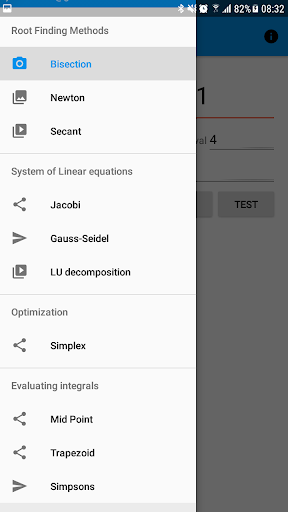 The app has the following methods: Bisection, Newton-Raphson, Secant, Jacobi, Gauss-Seidel, LU decomposition and I'll be adding more in the future.
