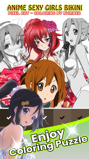 Anime Sexy Girl Bikini Color By Number For Adult App is free coloring book contains many pictures of girly anime character.