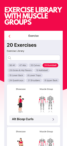 - Workout has shown with animation and muscle group