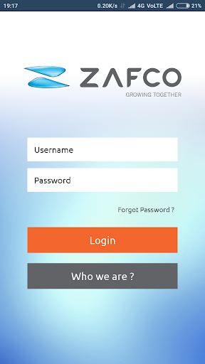 ZAFCO Sales Representative can access mobile application using provided login credentials