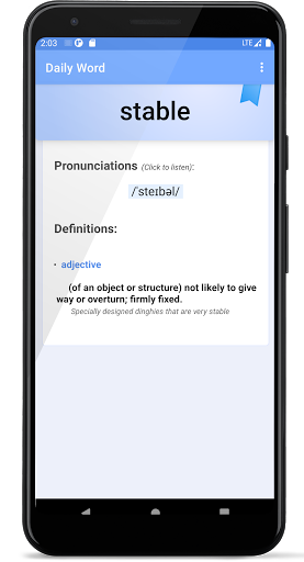 Learn a new word every day! You do not have much time to learn? But want to improve your English? With Daily Word you can learn one word a day.
