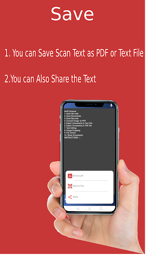 it provide a listen to voice option through which you can listen to the scanned text through voice.You can save the text in pdf or in text file format.