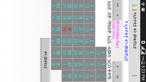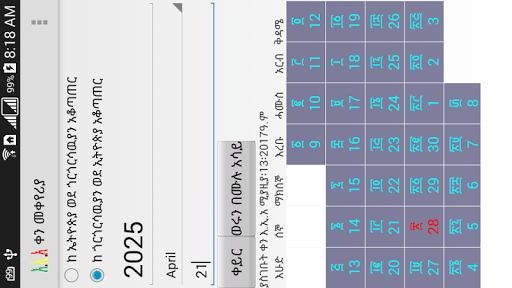 It is a user friendly app that shows the Ethiopian calendar with its gregorian counter part. It is very simple to use and also show the main Ethiopian orthodox holidays and main national days.