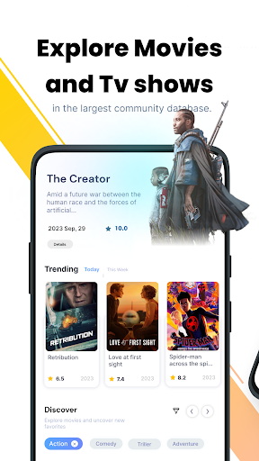 • Discover a variety of categories: Now Playing, On TV, Upcoming, Top Rated, and Box Office.