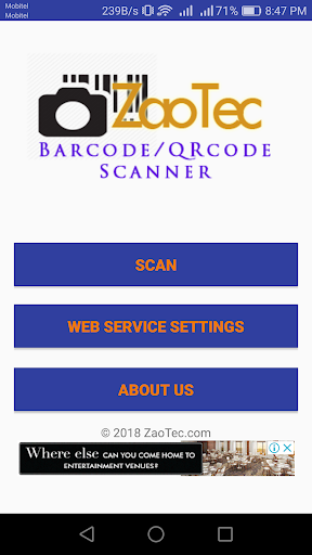 Zaotec barcode scanner is super-fast, accurate and safe reader for Android platform. Apart from scanning the barcode/QRcode, the app can be configured to transfer data to your own RESTful web service using HTTP POST method. This is the one and only barcode scanning app that can transfer scanned data to your own web service FREE.
