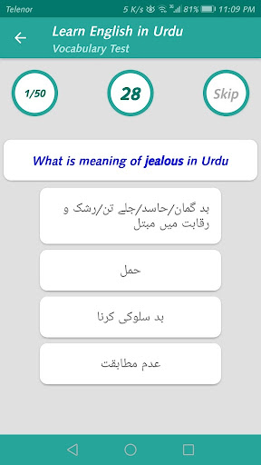 then, learn English in Urdu is one the best app for learning English in a very easy way in you own native language with more than 4million downloads.