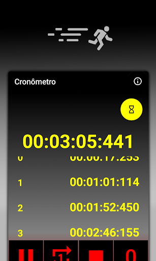 This app has a stopwatch that marks the hours, minutes, seconds and thousandths like a clock and a countdown timer. It also has a Laps List (Lap) to mark laps on the screen.