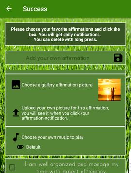 Personalize your affirmations with a background image from our gallery or in the premium version with your own image. You can also add your own music. Customize your positive affirmations to make them even more personal!