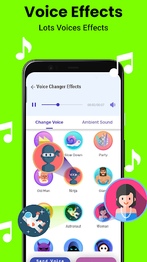 This free voice changer app offers a variety of voice and audio effects. Using the built-in voice modulator, you can play with voices like a pro. Transform a female voice into a male voice, turn a baby's voice into an elderly woman's voice, or mimic animal sounds like sheep or bees. You can even become a zombie, a robot voice, an alien, or a monstrous creature voice. Ambient sounds let you set the scene, whether it's in a cave, on a rainy day, a bustling street, or a train ride. More voice characters and effects await your experimentation, guaranteeing lots of laughter with this fun voice changer and editor. Come and enjoy the voice changer!