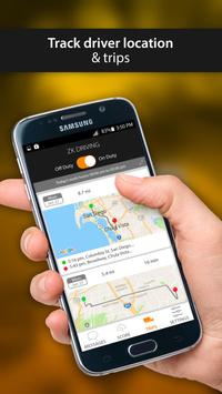 Where are my drivers? ZK Driving keeps track of your driver's location while on-duty and displays each drive and stop on the activity overview screen on the web portal