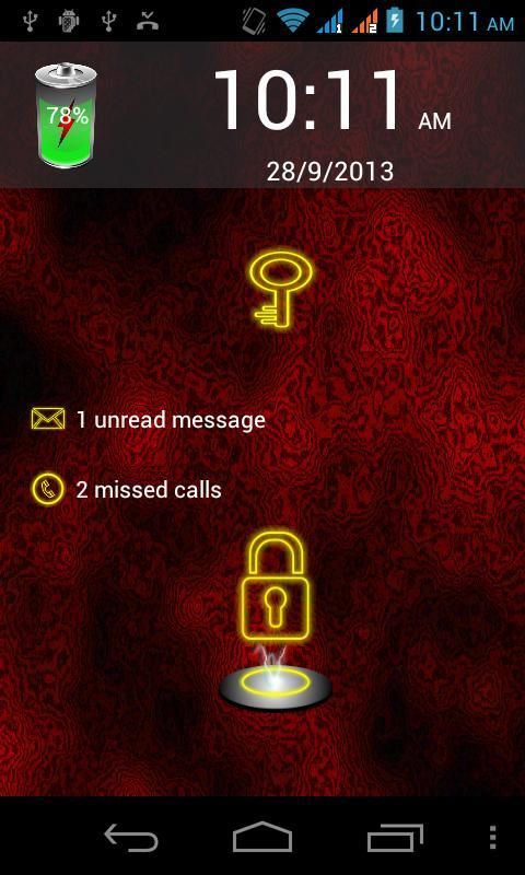 Unique Lock Screen App in the market. Do you like Neon Graphics? then this app is for you. Protect you mobile with Neon Lock Screen.This is very beautiful lock screen with attractive neon style graphics and this app also shows the notifications of unread messages and missed calls. This is an efficient screen lock protection using neon key and lock with very beautiful colorful themes.