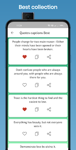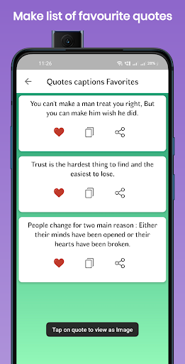 Quotes Captions has a huge collection of quotes and attitude status, You can use it to update your whatsapp statuses or even use as Instagram captions. Quotes captions has best collection of captions for photos so comes with beautiful images , user your own images and create custom backgrounds.