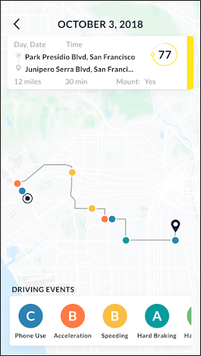 Copilot automatically detects trips and analyzes driving behavior, providing a turn-by-turn breakdown of each drive. Drivers can identify their strengths and opportunities for improvement by seeing their dangerous behaviors on an interactive map. Copilot detects crashes and other signs of unsafe driving like distracted phone use, speeding, hard braking, rapid acceleration, and hard turning.
