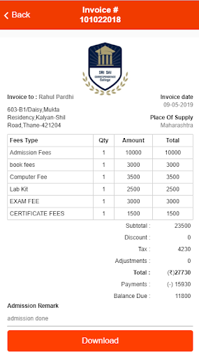 SRI SAI CORRESPONDENCE COLLEGE Student/Parent App for daily updates of attendance, to check homework, progress card, attendance report, etc.