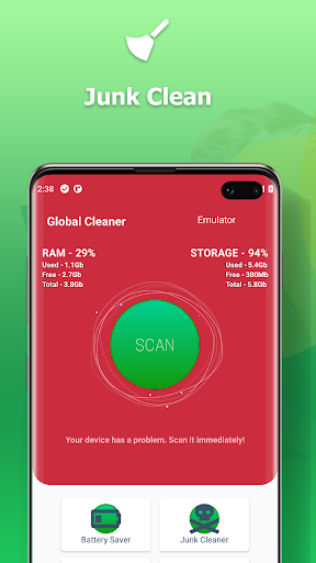 Global Cleaner is created to keep your device clean and health. Every day your applications in your phone create a huge bunch of junk and slow down your smartphone. That's why you should clean your phone daily. Global Cleaner will help you with that! What can Global Cleaner do?