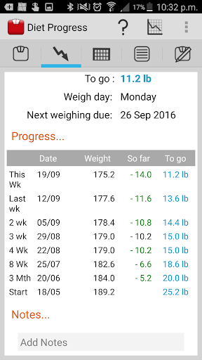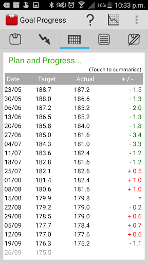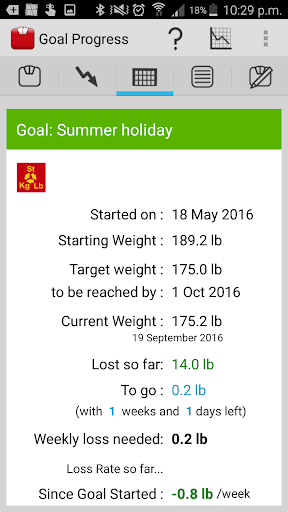 * Setup a Goal to achieve a particular weight by a certain date. Weekly target weights are automatically calculated for you to track how you are progressing