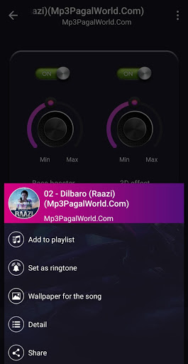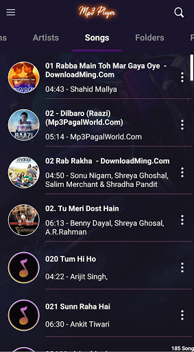 Mp3 Player is the best free music player nowadays. Powerful set of sound equalizer including 5 sound ranges, bass effects and 3D effects. You can easily find your song in the device, be able to set your favorite song as the device’s ringtone... and many other features of the application.