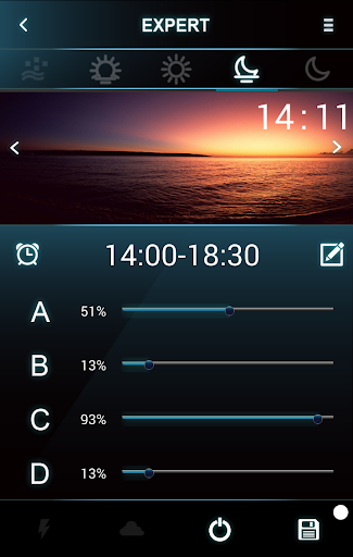4. Free adjusting light effect in five timers: dawn, sunrise, daytime, sunset and nighttime.