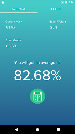 - Enter your current average, exam weight and exam score and Exam Calculator will provide you with your new average.