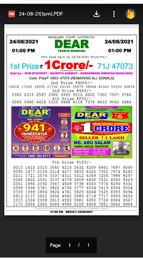 Finally, at the bottom, you will see an option " Download PDF" and click on that to download Lottery Sambad Result.