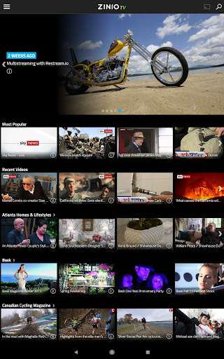 ZINIO TV is a free video app that gives you unlimited access to a great selection of videos from a wide range of magazine titles. Created by ZINIO, the world's largest newsstand with 6,000 magazines from around the world, ZINIO TV brings together premium video content from a wide range of magazine publishers into one easy-to-use app.