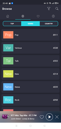 - Collection of 24k stations from over 185 countries & 100 genres