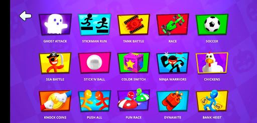 At Stickman Party, playing on the same device with friends is a lot of fun. The more people playing together, the more fun, but if you have no one around to play with, you can also play alone for one player, to train your skills for your later victories when you play with your friends.
