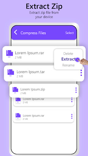 This zip unzips app compresses and extracts all your documents with the powerful compression and extraction algorithm. You can reduce the size of the files and extract all your files with a file compressor tool. Zip File extractor & File Manager also allows you to combine all the files and compress them easily. Fast Zip Unzip Compressor Compresses all files available on your device whether it be documents, music files and videos, etc.